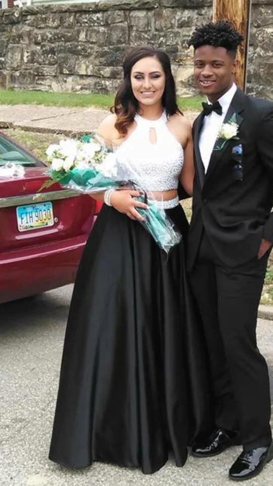 Two Pieces White Top Black Skirt Beading A-line Wedding Prom Dress K643