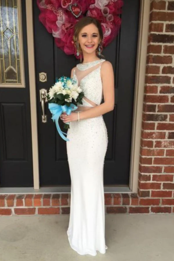 White Sequin Shiny Long Elegant Beaded Mermaid Party Prom Dress K642