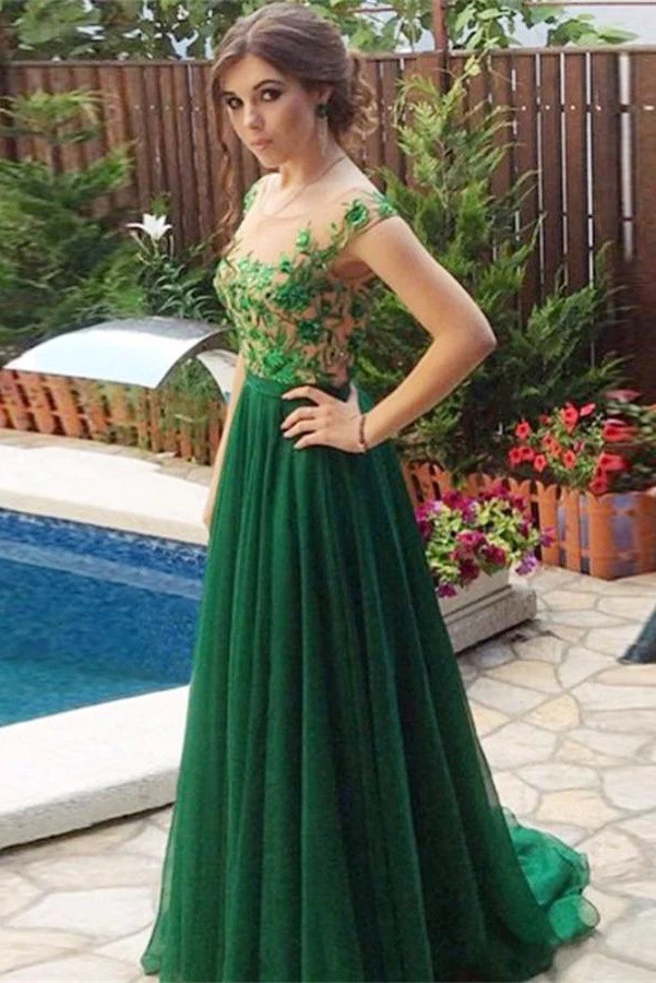 Cap Sleeve Lace Beading A-line Ball Gown Long Prom Dress K645