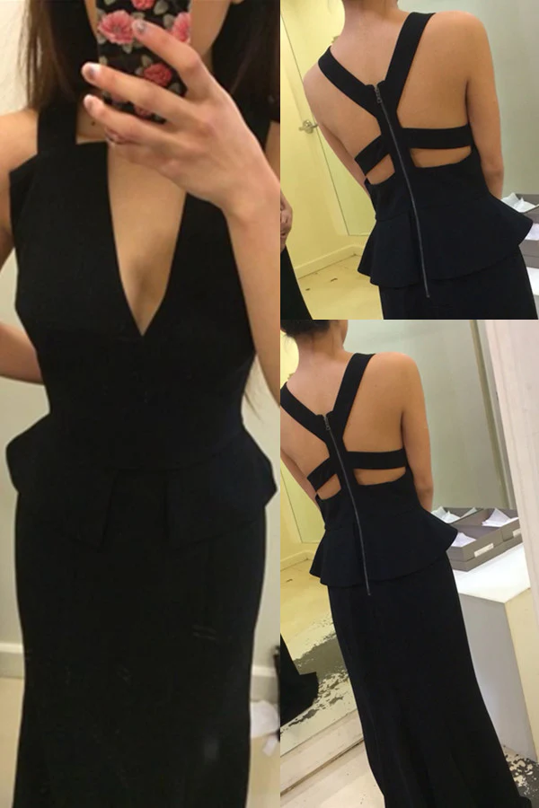 Sexy Black Long Mermaid Backless Deep V-neck Simple Prom Dress K657
