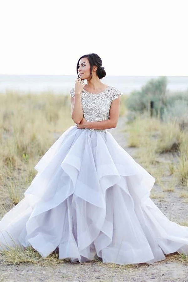 Elegant Two Pieces Beaded A-line Beauty Tulle Prom Dress For Teens K682