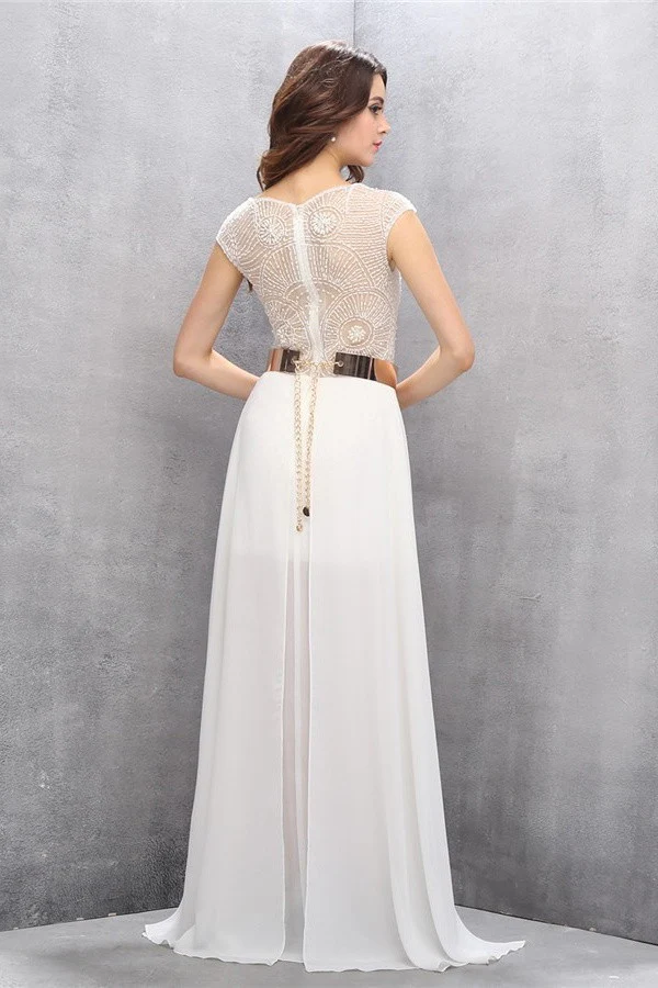 Spaghetti Straps White Chiffon Beaded Long Two Pieces Prom Dress K688