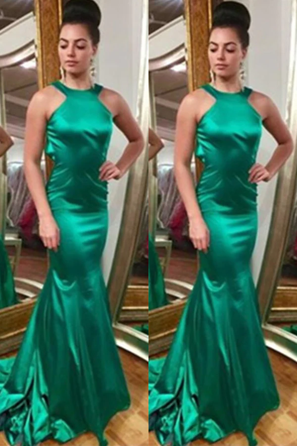 Handmade Simple Cheap Green Long Open Back Mermaid Prom Dress K662