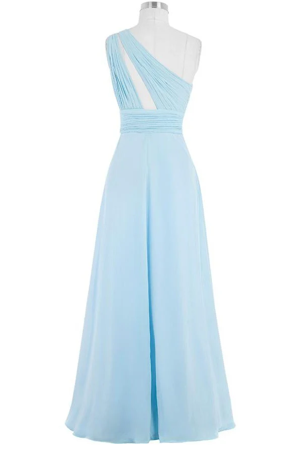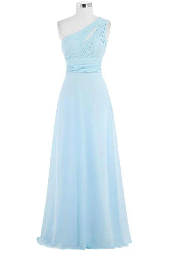 Light Sky Blue One Shoulder Long Chiffon Plus Size Cheap Prom Dress K749