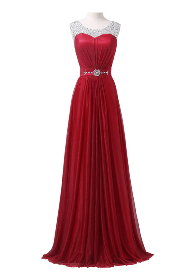 Red Long Beading Sparkly Modest A-line Floor Length Prom Dress K747