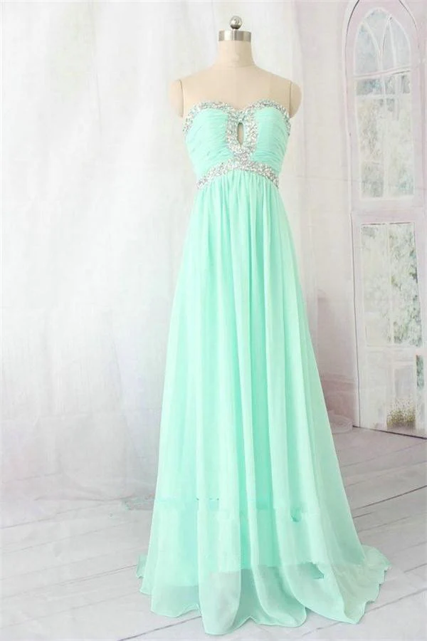 Mint Chiffon Long Sweetheart Beading High Low Prom Dress K712