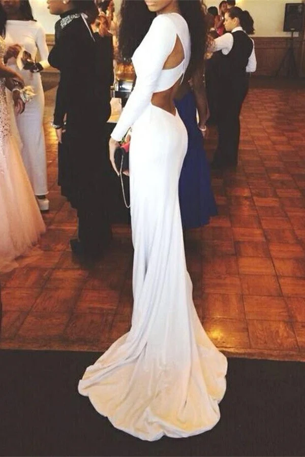 Long Sleeves White Mermaid Long Simple High Quality Cheap Prom Dress K723