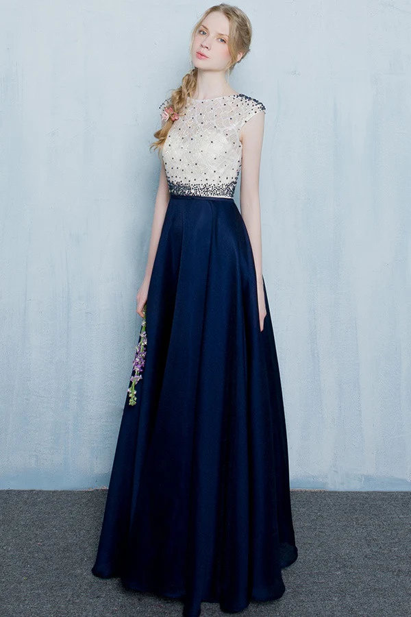 Beautiful Dark Blue Long Beading Zipper Back Prom Dress K724