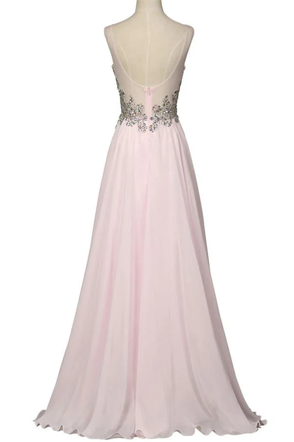 Beautiful Girly Chiffon Long Beading Pink V-neck Backless Prom Dress K744