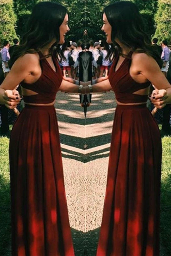 Charming Two Pieces Long A-line Burgundy Beauty Prom Dress K738