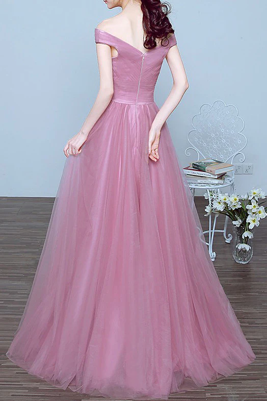 Pink Long Slit Elegant off the shoulder Prom Dress, Long Evening Women Formal Dress OK175