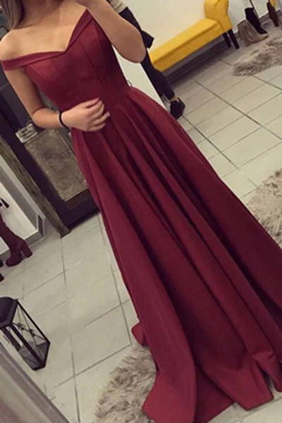 Simple Burgundy Off The Shoulder Long Prom Dress/Evening Gown OK133