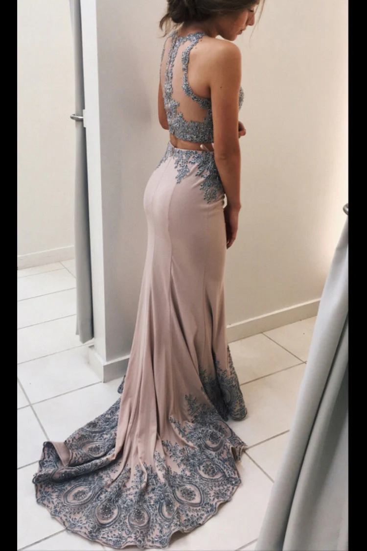 Lace Appliqued 2 Pieces Mermaid Sweep Train Prom Dress,Senior Prom Dress OK178