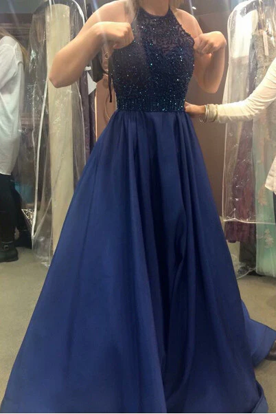 Blue Sexy Evening Formal Dress,Lace A Line Prom Gowns Long Charming Prom Dress OK179