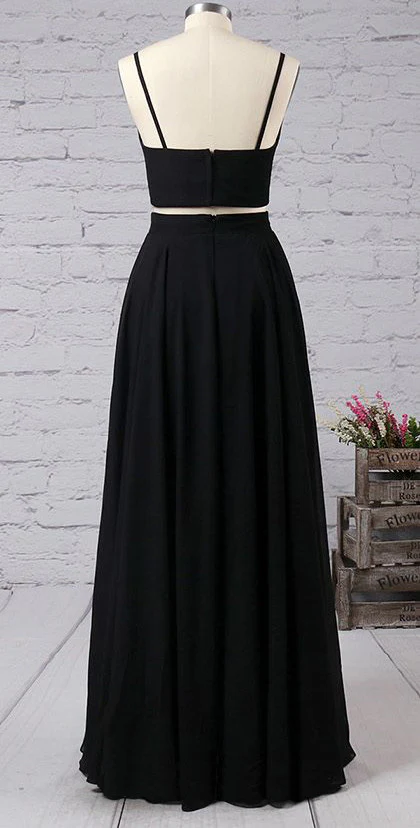 Simple Black Two Pieces Long Cheap Modest Prom Dress Party Dresses K772