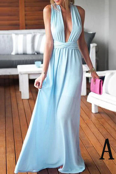 Sexy A-Line Backless Prom Dresses,Deep V-Neck Long Prom Evening Dresses OK130