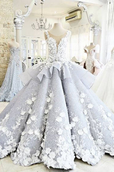 Wonderful Ball Gown Appliques Prom Dresses,Formal Blue Evening Dress,Quinceanera Dresses OK357