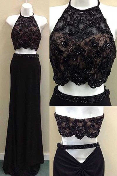 Two piece black long Sexy Beading Lace chiffon prom/evening dress OK230