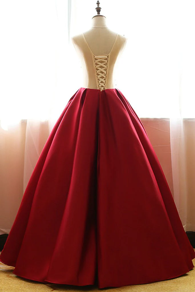 Unique A Line Sweetheart Burgundy Long Ball Gown Prom Dress, Evening Dress OK252