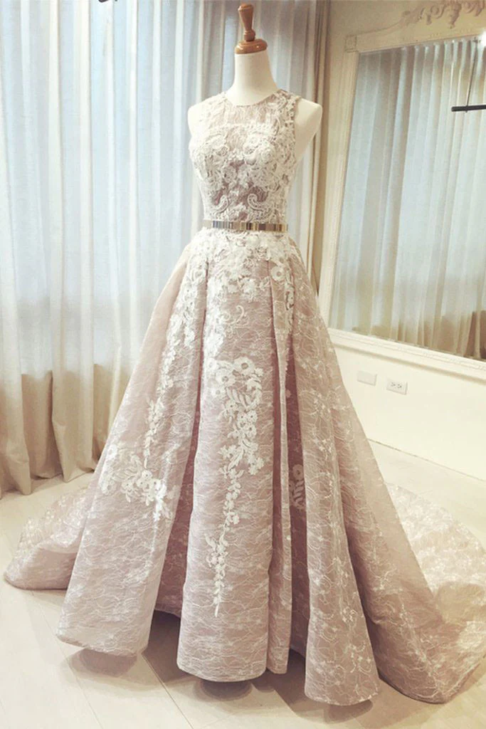 beautiful round neck lace long sleeveless prom dresses,pretty wedding dress OK227