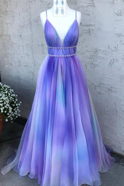 A Line Ombre Long V Neck Chiffon Prom Dress, Evening Party Dress OK1408
