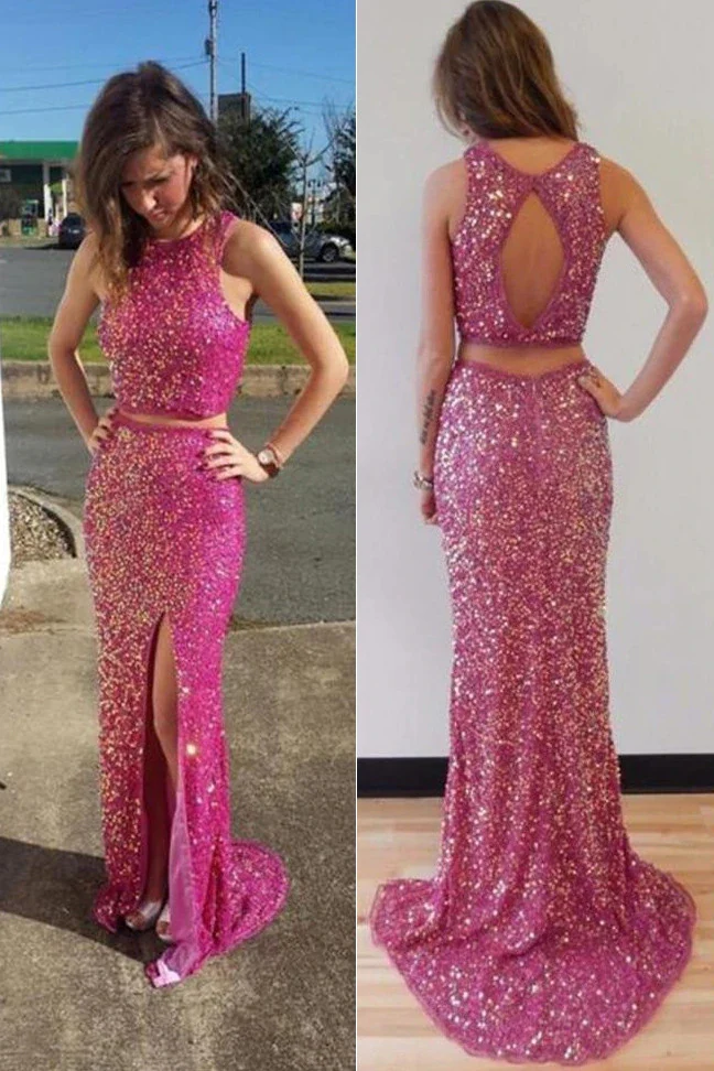 Glittering 2 Pieces Open Back Side Slit Prom Dress Cocktail Party Dress OK1406