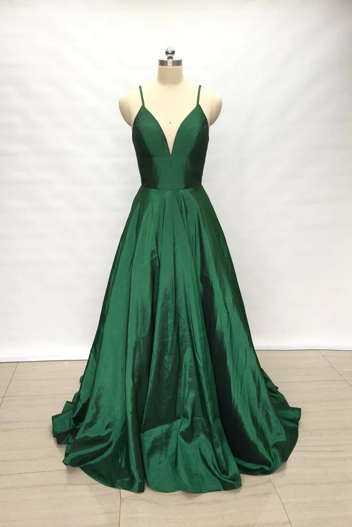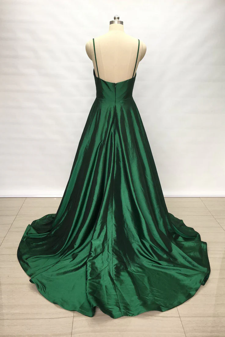 Spaghetti Straps Emerald Green A-line Long Simple Prom Dress OKW7