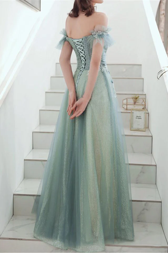 Mint Green Off Shoulder Appliques Long Prom Dress Evening Dress Women Custom Dress OKV88