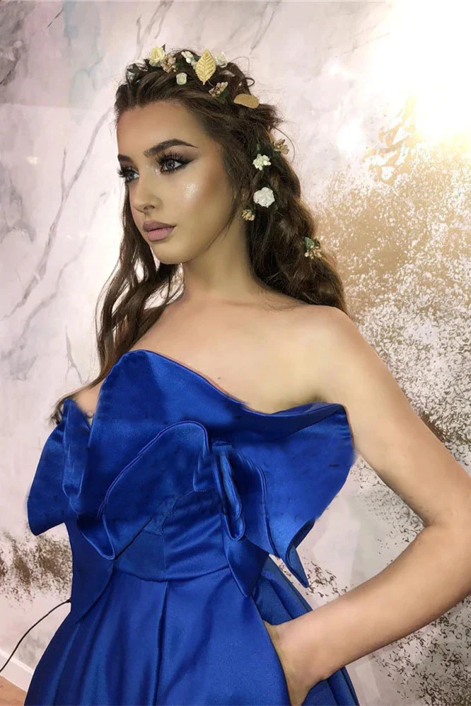 Sweetheart A-line Prom Dress Long With Pockets Royal Blue Satin Evening Dress OKW36