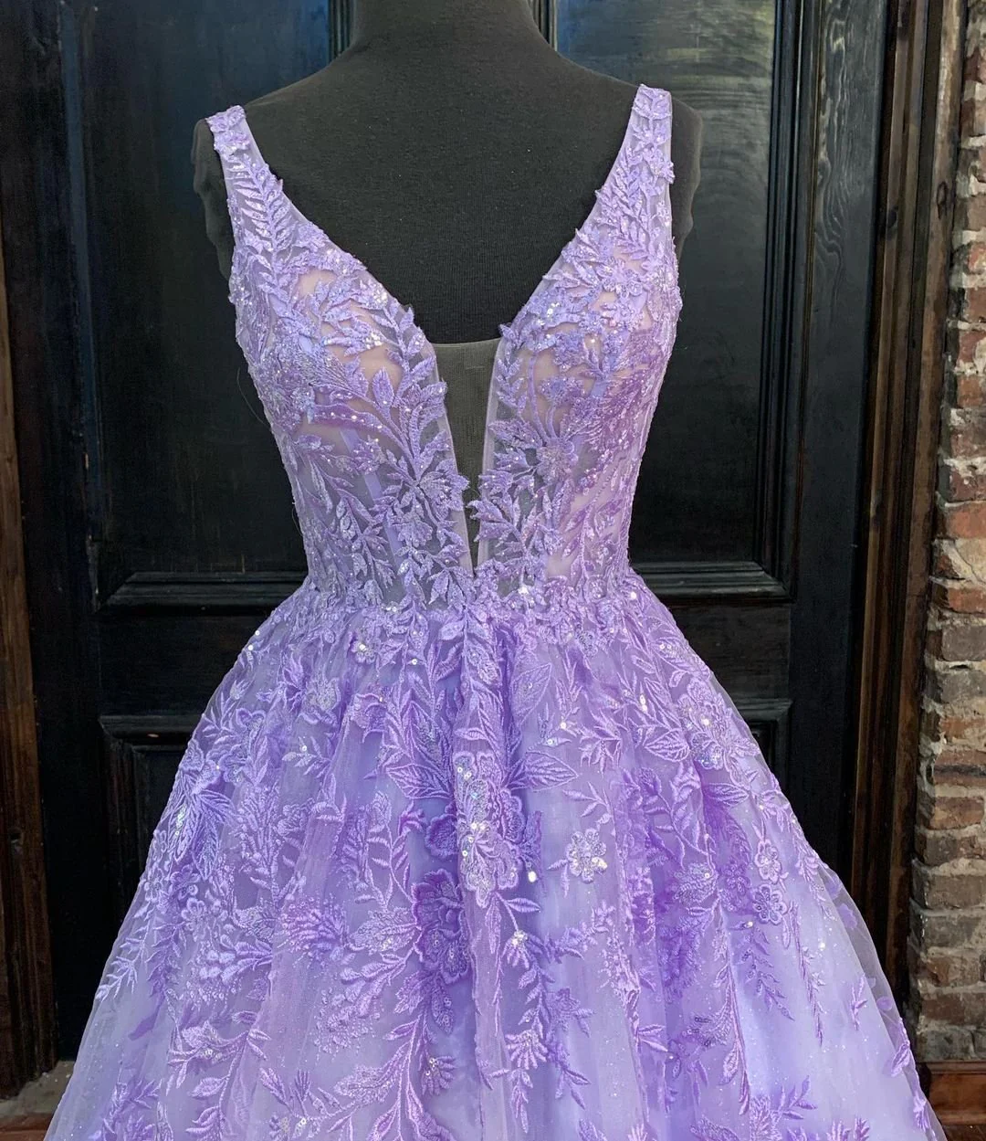 V Neck Appliques Ball Gown Prom Dress Elegant Formal Evening Dress OKX1