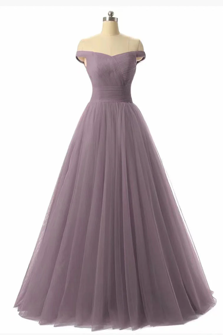 Simple A-line Tulle Off the Shoulder Prom Dress Bridesmaid Dress OKW64