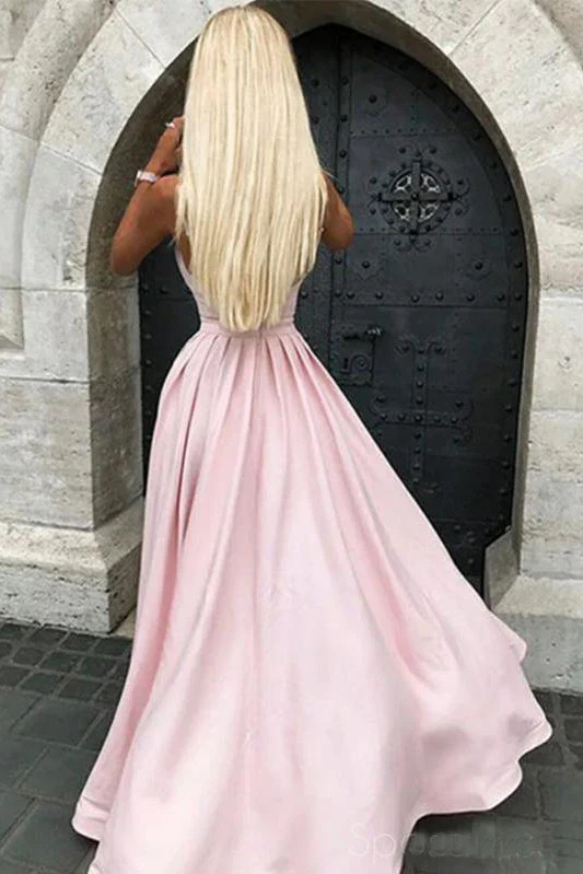 A-line Sleeveless Spaghetti Straps Long Pink Prom Dress Sweet 16 Prom Dress OKW82