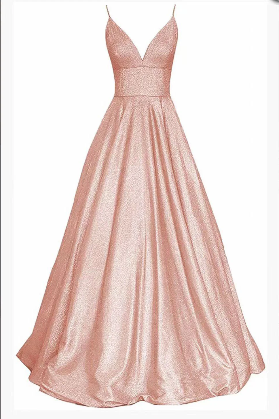 Shiny V Neck Spaghetti Straps Long Prom Dress Bling Bling A-line Formal Evening Dress OKX13