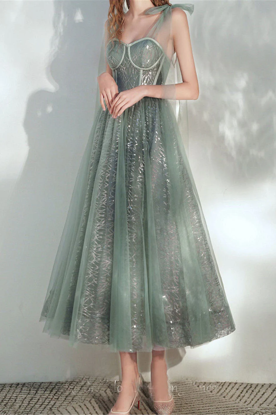 Sweetheart Princess Simple Tulle Sparkly Ankle Length Prom Dress Back To School Dress OKW79