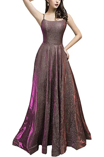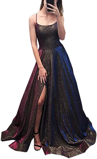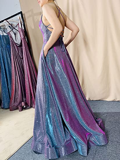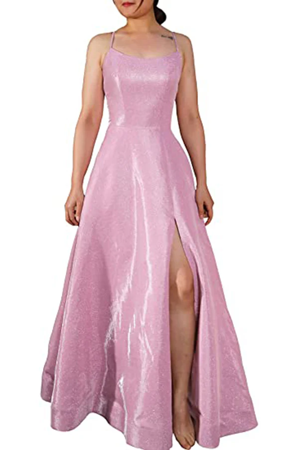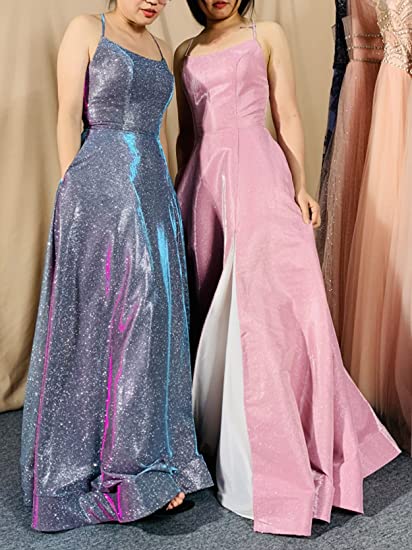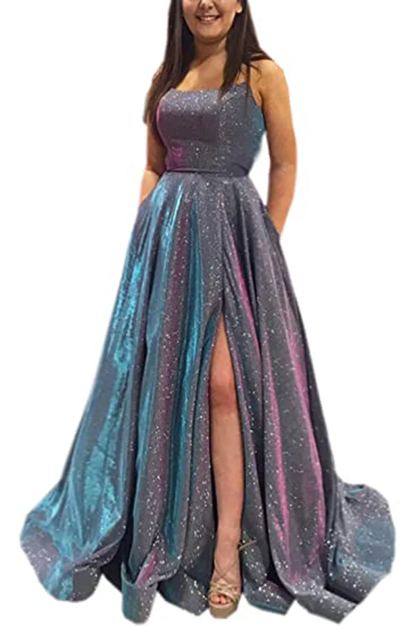Long A-line Prom Dress with Pockets Formal Evening Ball Gowns Side Slit Glitter Party Dress OKY42