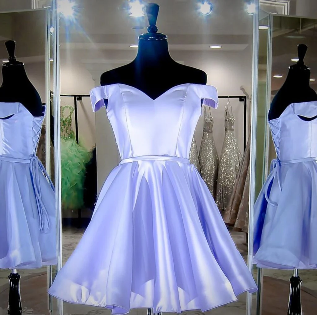 Off the Shoulder Short Lavender Prom Dress Short Purple Graduation Homecoming Dress OKX49