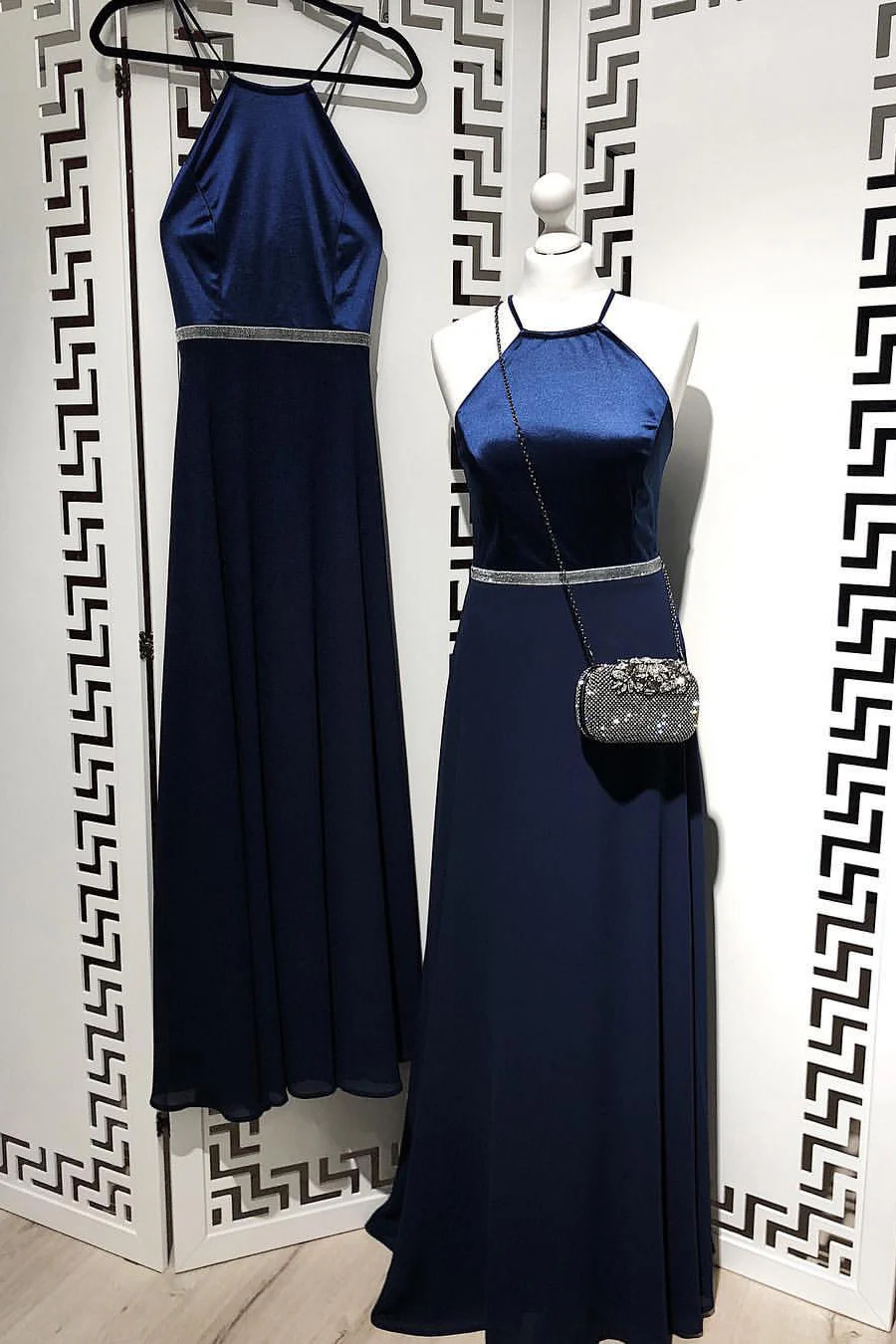 A Line Navy Blue Chiffon Long Prom Dress,Cheap Party Dresses OKI81
