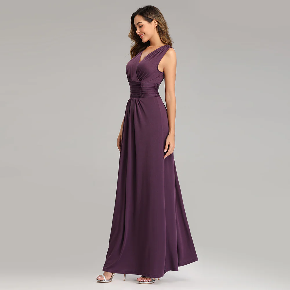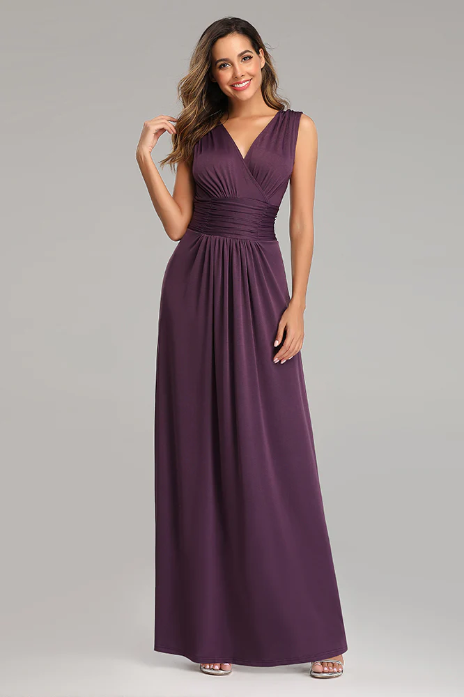Simple A-Line V Neck Long Sleeveless Prom Dresses XU90818