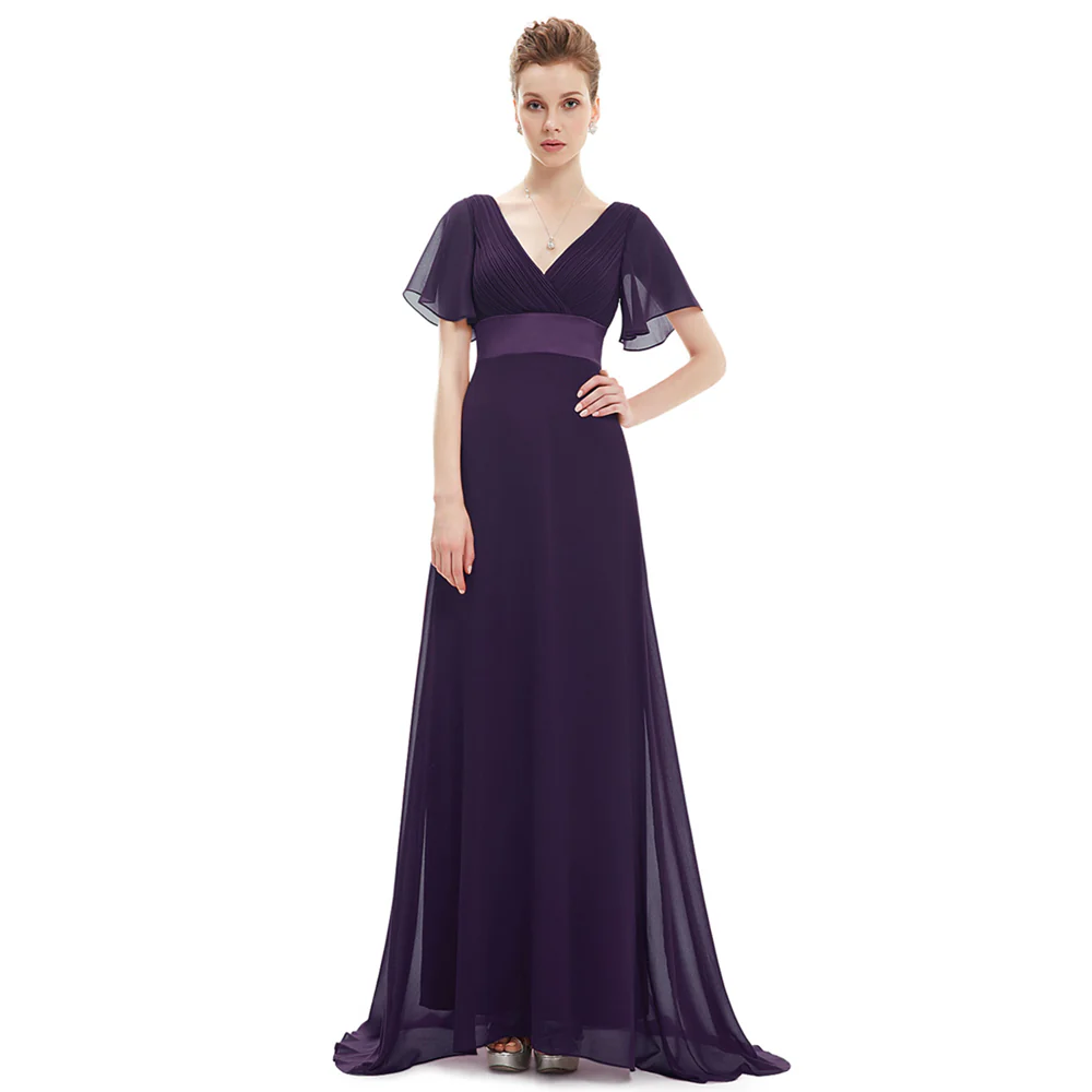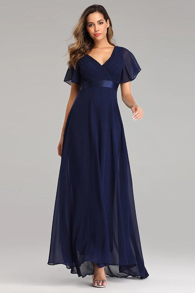 A Line Chiffon Short Sleeves Long V Neck Prom Dress XU90812