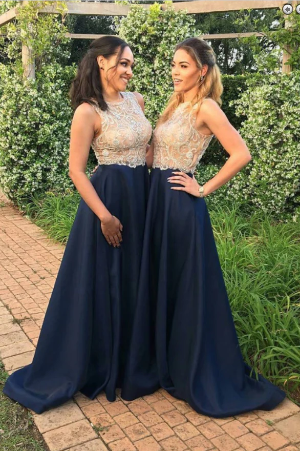 Navy Blue Long Cheap Beaded Prom Dresses,New A Line Bridesmaid Dress OK873