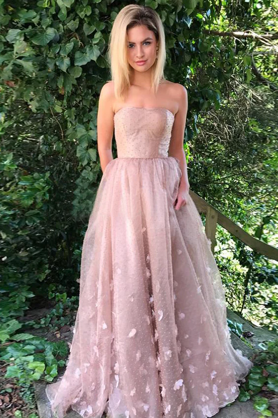 Princess Strapless A-Line Dusty Pink Long Formal Prom Dress Evening Dress OK895