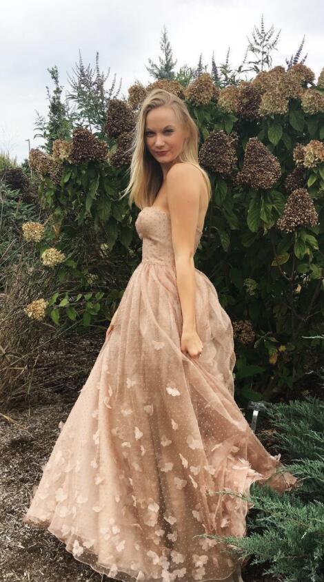 Chic A-line Long Pink Flowers Applique Cheap Prom Dresses OK883
