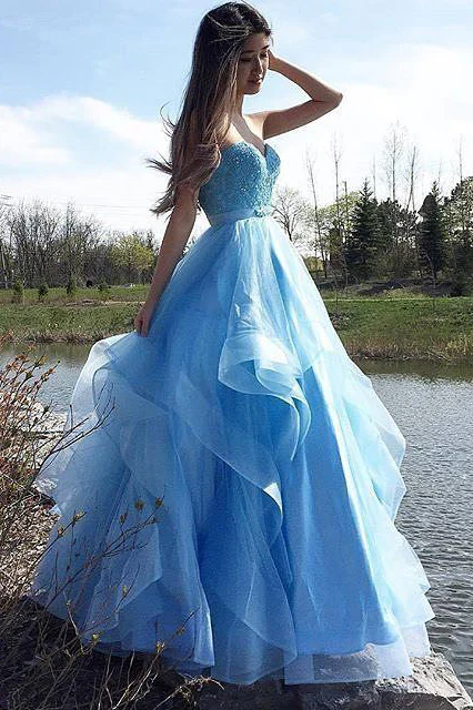 Sweetheart Blue Evening Dresses,Sexy Tulle Puffy Prom Dresses OK863