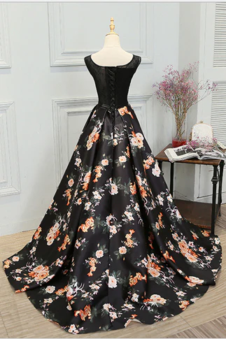 Stylish A Line Long Floral Printed Prom Dresses,Formal Evening Dress OK831