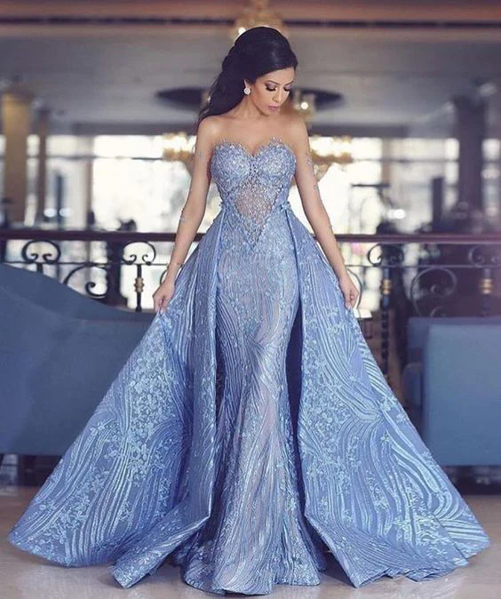 Elegant Sweetheart Mermaid Prom Dresses With Detachable Train,Fashion Blue Evening Dresses OK872