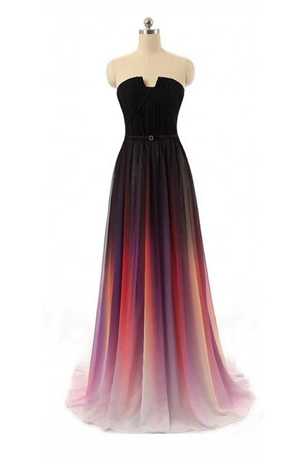 Black Navy Blue Ombre Chiffon Long Prom Dresses K146