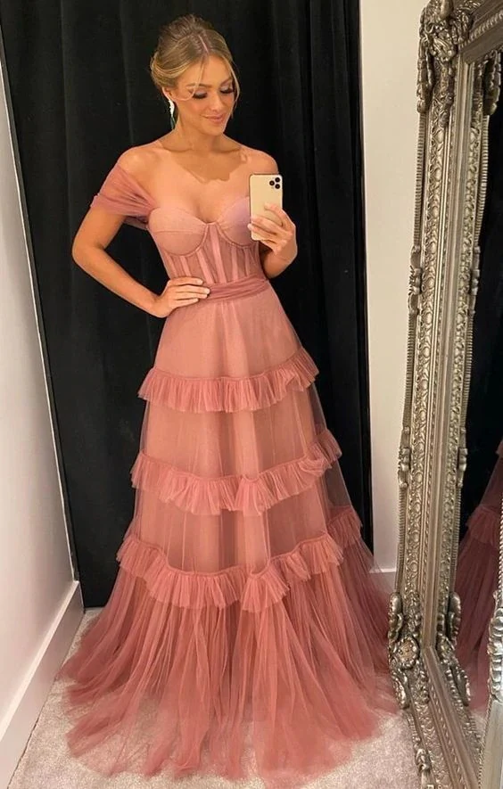 Sweetheart Tulle Tiered Prom Dress Long Formal Evening Dress With Slit OK1267